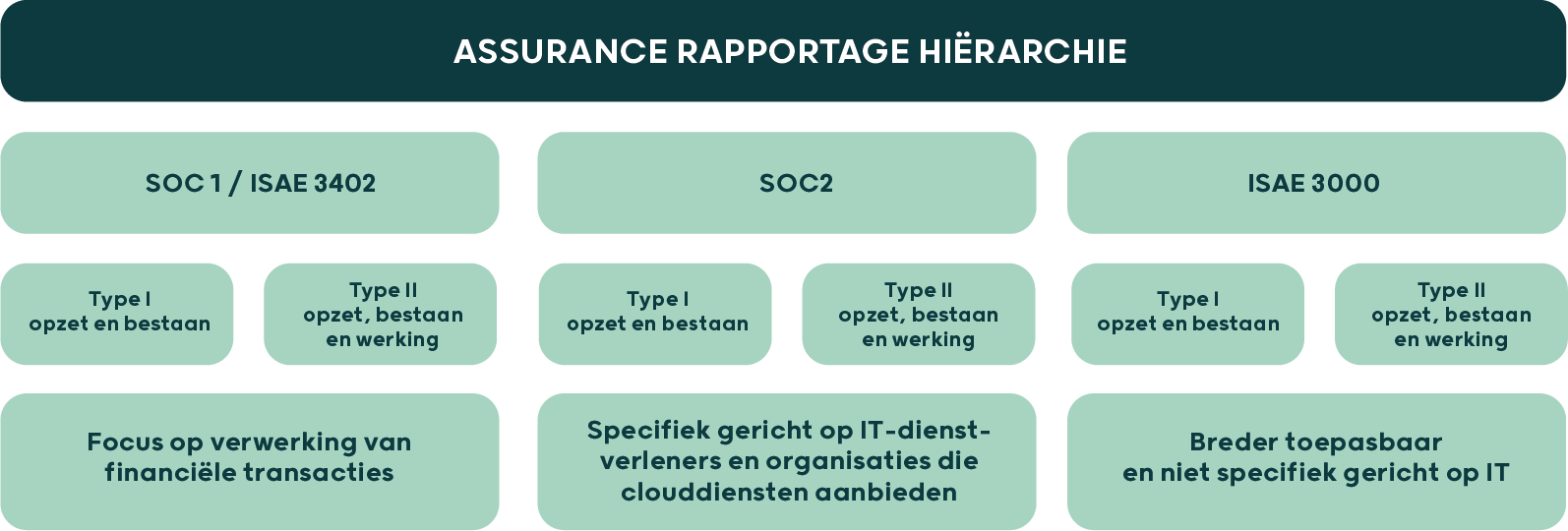 Assurance verklaringen zijn onafhankelijk getoetste rapporten die door een externe auditor worden verstrekt. Deze rapporten geven een objectieve beoordeling van de effectiviteit van interne beheersingsmaatregelen binnen een organisatie die een dienst aanbiedt, ook wel servicedienstverlener genoemd. Ze kunnen betrekking hebben op verschillende aspecten, zoals interne controles, informatiebeveiliging en de naleving van wet- en regelgeving. De meest bekende types zijn onder andere de SOC 1-, SOC 2-, ISAE 3402- en ISAE 3000-verklaringen.